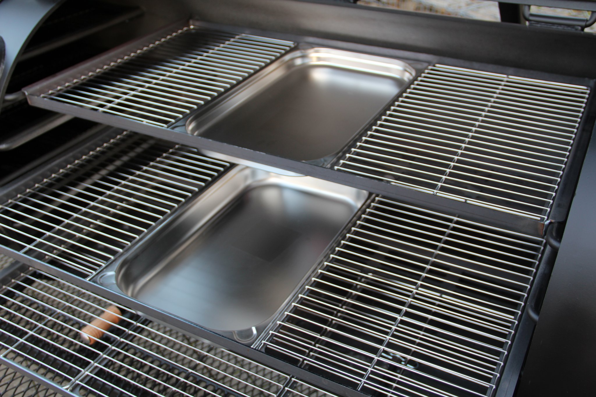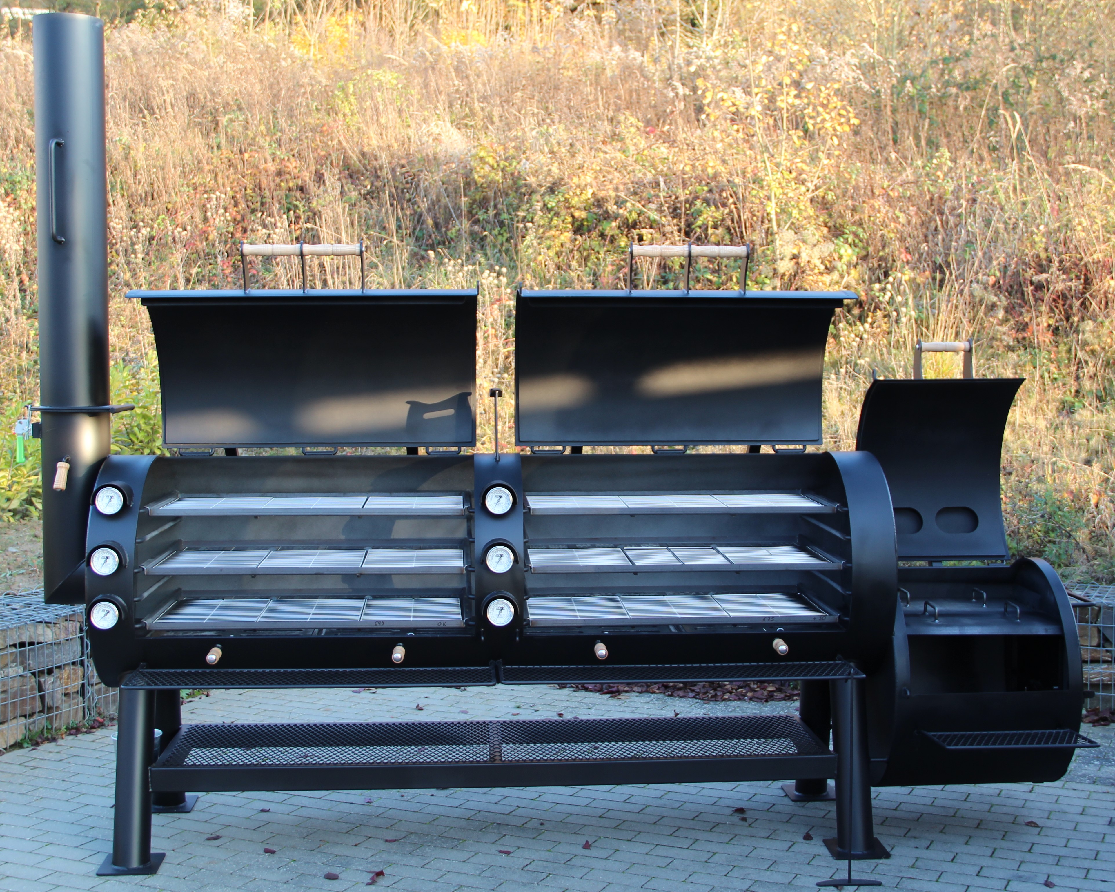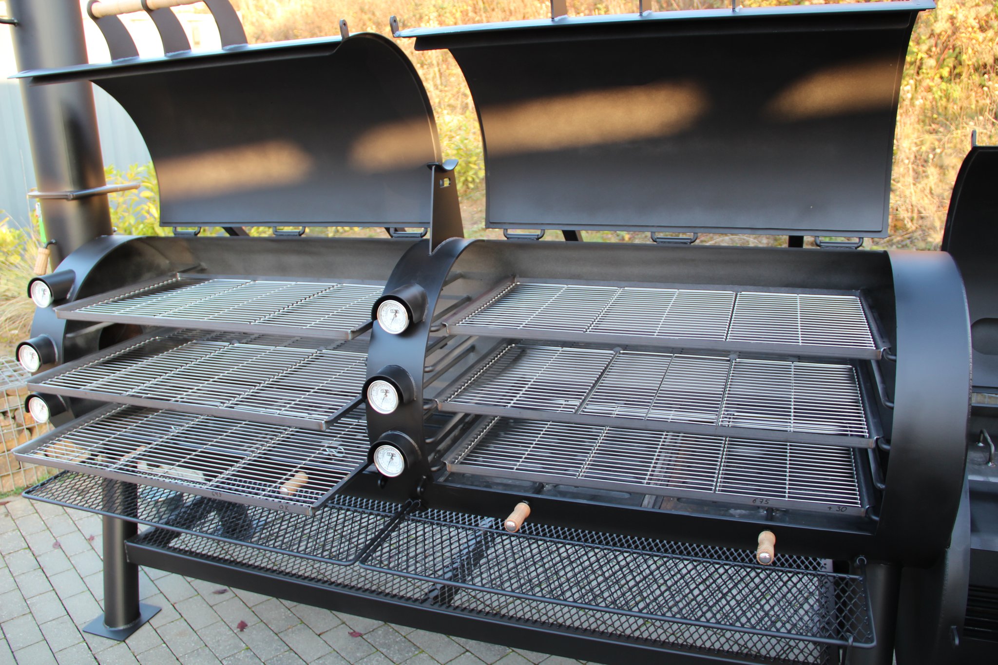 Einfache Temperaturkontrolle durch sechs Edelstahlthermometer für jede Rostebene.